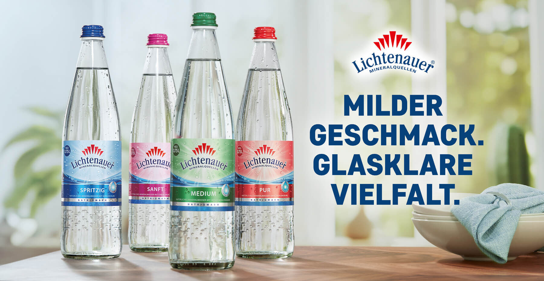 Im erzgebirgischen Becken entsteht ein einmaliges Naturprodukt feinster Qualität und erster Güte. Als Teil eines jahrmillionen alten Kreislaufes nimmt das Wasser seinen Lauf durch die Gesteins- und Bodenschichten des Erzgebirges und wird dort mit wichtigen Mineralien und Spurenelementen angereichert. Dadurch erhält Lichtenauer Mineralwasser seinen einzigartigen und unverwechselbar milden Geschmack. Neben Mineralwasser hat Lichtenauer viele weitere Produkte im Angebot – von Limonaden, über Sportgetränke bis hin zu Fruchtsaftschorlen. Bei Lichtenauer findet jeder seinen „täglichen Lichtblick“