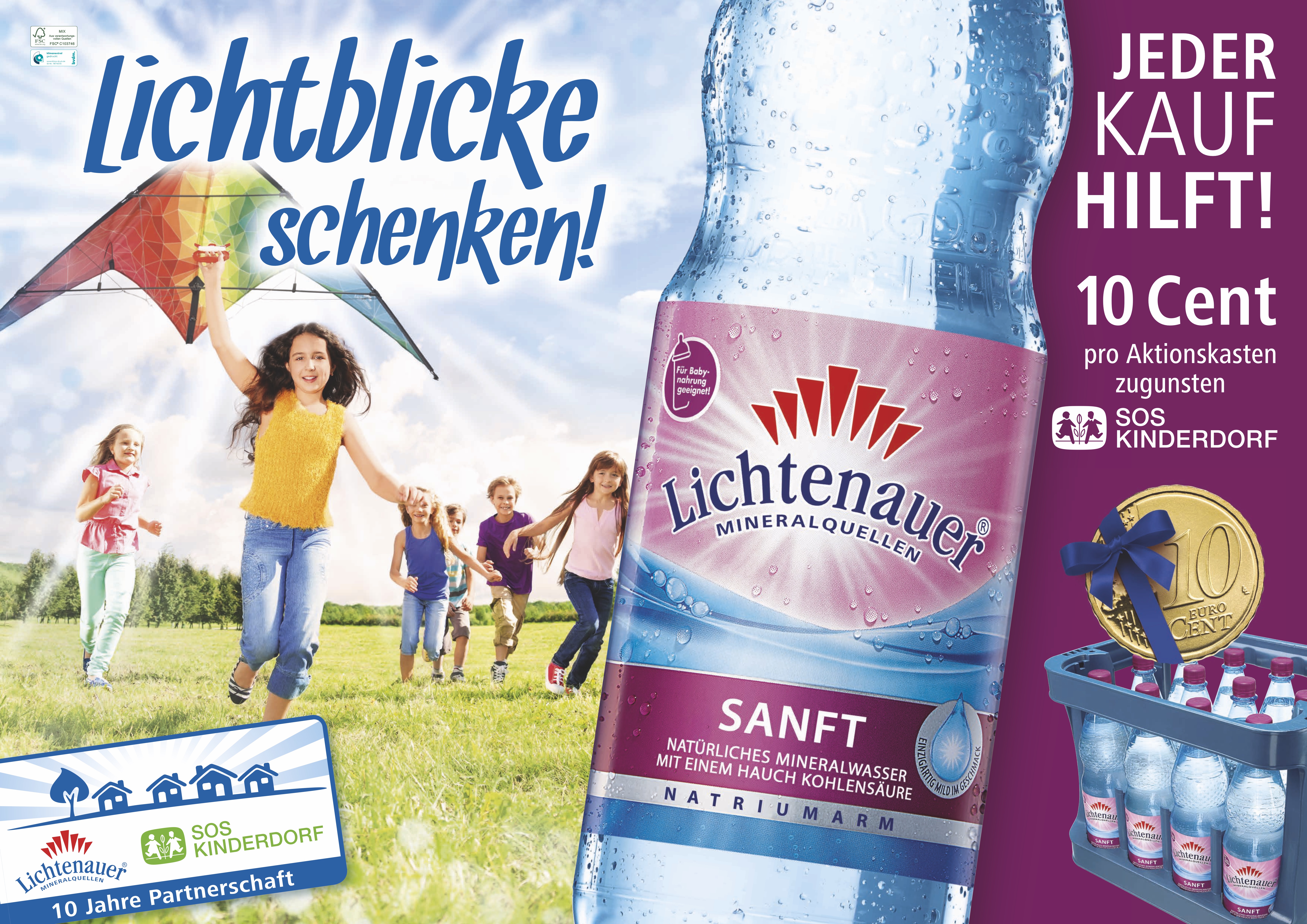 Die Spendenaktion „Lichtblicke schenken“ der Lichtenauer Mineralquellen und des SOS-Kinderdorf e. V. wird in diesem Herbst 10 Jahre alt. Bereits 25 ausgewählte Kinderdorf-Projekte in Ostdeutschland konnten in diesem Zeitraum mit