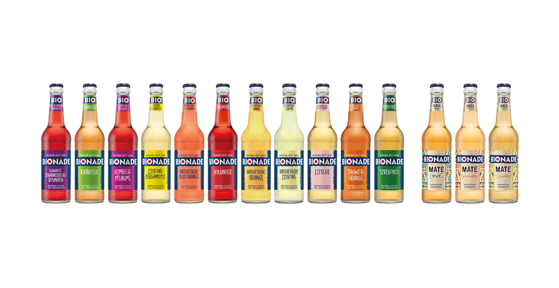 nun sämtliche BIONADE Mate Sorten (Pur, Pfirsich, Limette) ausschließlich im