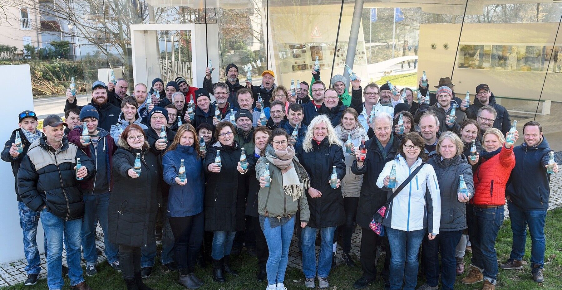 Rund 50 Bionade Mitarbeiter waren heute, Freitag,den 23. Februar, bei Hassia Mineralquellen in Bad Vilbel zu Gast. Nach einem herzlichen Willkommen ging es auf Entdeckungstour durch die Produktion, das Labor, die Logistik, Sortierung und das Hochregallager. Zum Abschluss ging es in den Kurpark von Bad Vilbel. Hier zeigte Günter Hinkel den Bionade-Mitarbeitern den Hassia Brunnentempel, das Römermosaik, das alte Produktionsgelände in der Innenstadt mit dem ehemaligen Stammhaus der Familie Hinkel.