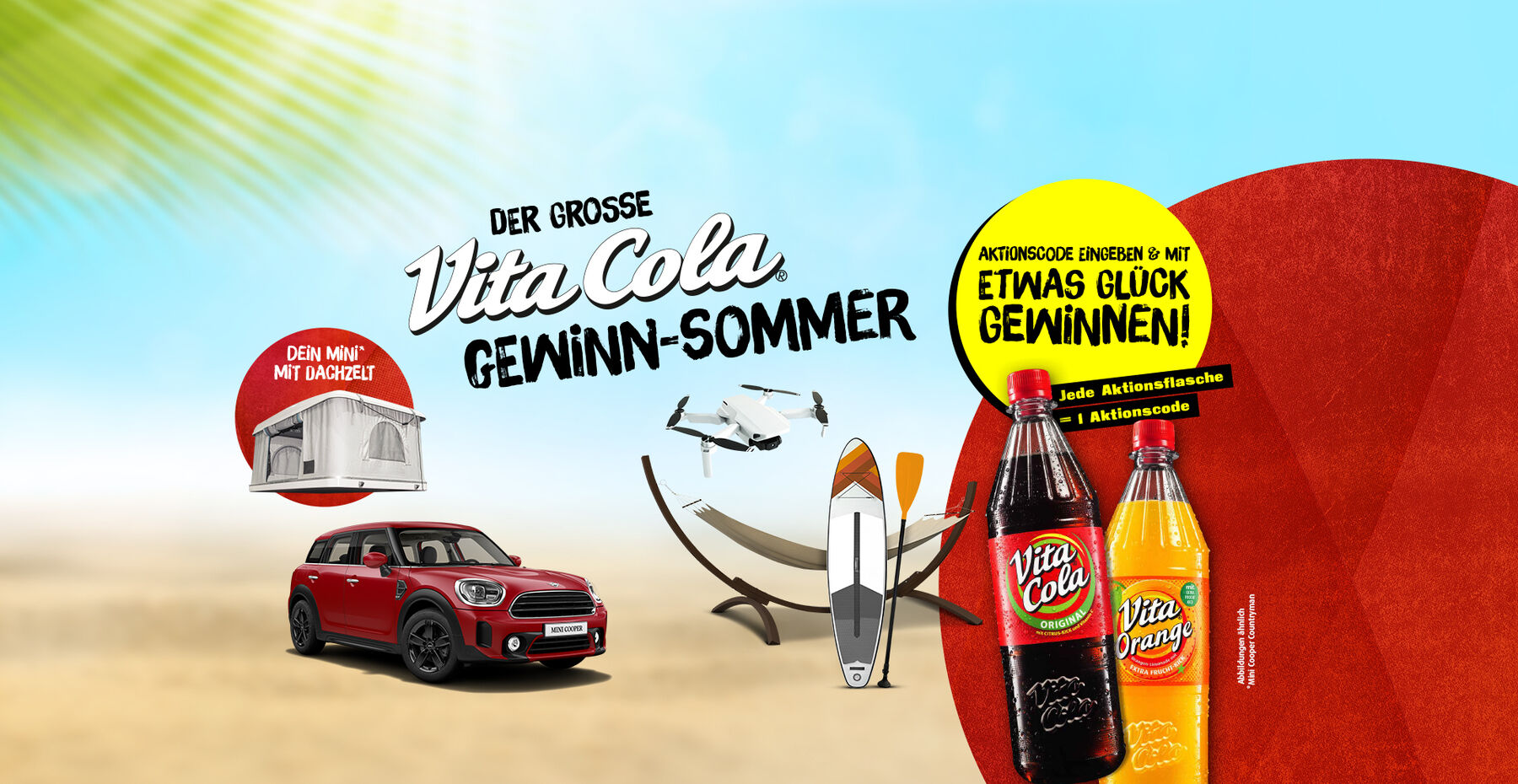 Für die Verlosung werden insgesamt 6,2 Millionen 1,0-l-PET-Mehrwegflaschen von drei Sorten VITA COLA und vier VITA LIMOs mit Aktionscodes im Umlauf sein. Jeder Code, der bis 30. Juni auf der Aktionswebsite www.vitacola-sommer.de eingegeben wird, sichert den Teilnehmern die Chance auf einen attraktiven Tagesgewinn. Ob man zum Beispiel eine XXL-Hängematte, eine Hobby-Drohne von DJI oder ein Board für den ultimativen Sommertrend Stand up Paddling gewonnen hat, wird sofort verraten. Alle Teilnehmer landen außerdem im Lostopf für den MINI Cooper Countryman mit Dachzelt.
