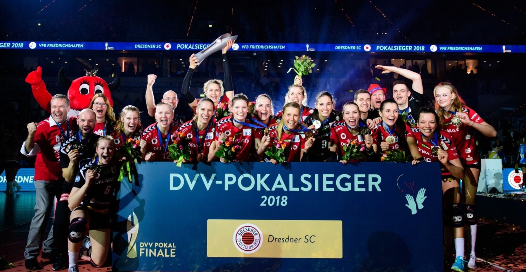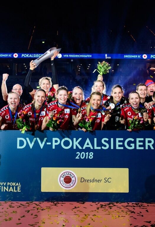 Auch in diesem Jahr konnten die Dresdner Volleyballerinnen wieder ein Stück DSC-Erfolgsgeschichte schreiben. Die Mannschaft von Trainer Alexander Waibl besiegte im Pokalfinale von Mannheim den VC Wiesbaden mit 3:0 (25:21, 25:22, 25:18) und holte somit den achteinhalb Kilo schweren „Pott“ souverän in die Margon Arena. Insgesamt ist es bereits der elfte Titel für die DSC Volleyball Damen; allein sieben sind es inzwischen unter Leitung von Alexander Waibl.