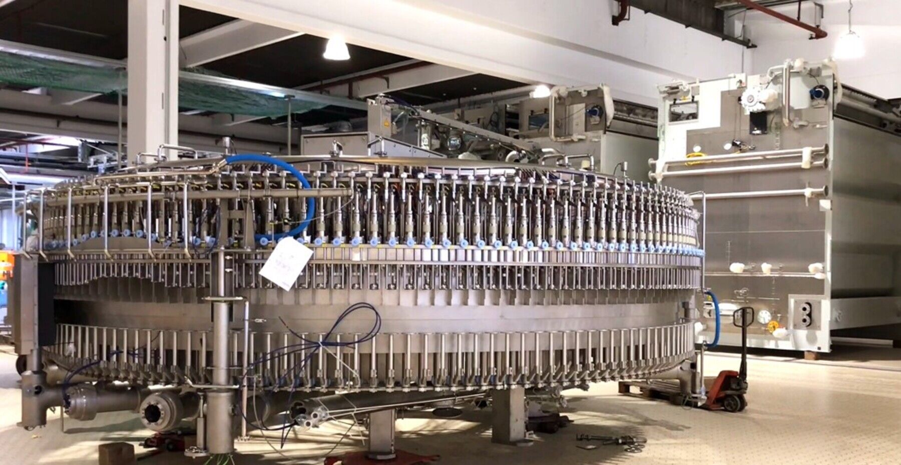 Das passt! Zur Zwischenlagerung der insgesamt 140 Lkw-Ladungen plus 50 Tieflader Anlieferungen mit Teilen der neuen Anlage wurde kurzerhand der Festplatz in Bad Vilbel bis Dezember gebucht. Höhepunkt der Montage waren Mitte Oktober die Anlieferung und Anbindung des 22 Tonnen schweren Füllers sowie der 130 Tonnen schweren Waschmaschine.