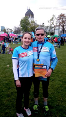 Jörg Fernbach, Vizepräsident Breitensport und Pressesprecher des Leichtathletik-Verbands Sachsen e.V. mit einer Teilnehmerin beim Lichtenauer Halbmarathon 2016.