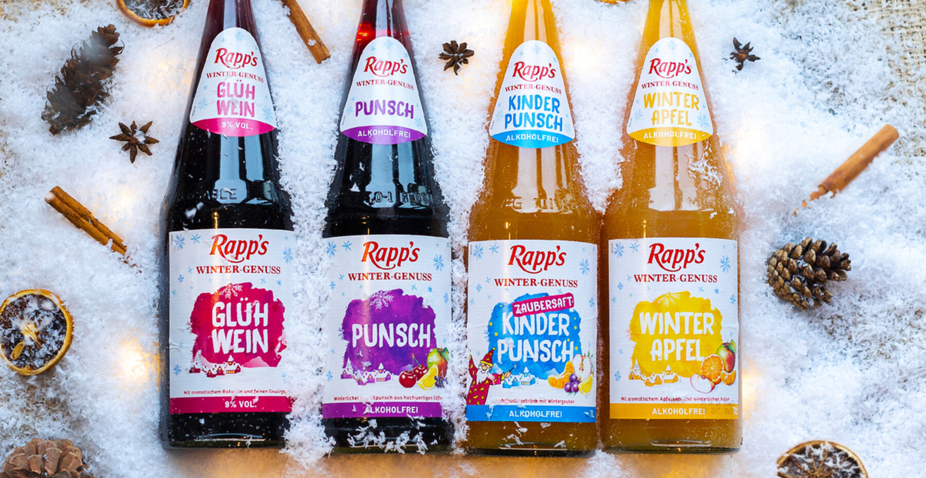 Auch dank ihrer modernen, impulsstarken Etiketten versprechen der klassische Glühwein sowie der fruchtige Punsch mit dem Geschmack von Zimt und Nelken an ihre Vorjahreserfolge anzuknüpfen. Dazu gesellen sich jetzt der aromatische Winter Apfel sowie der Zaubersaft Kinderpunsch als winterliche Variante des bei kleinen Genießern sehr beliebten Zaubersaftes.