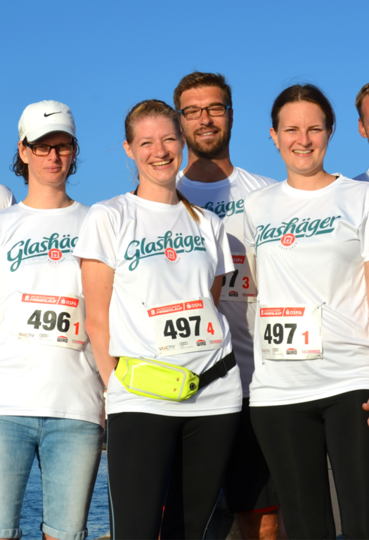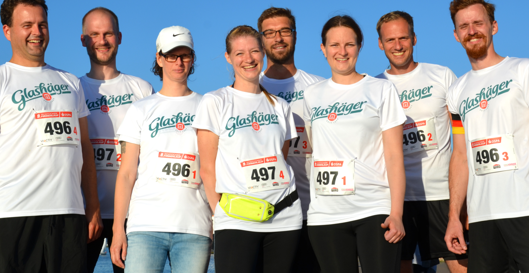 „So starten wir hier durch.“ – Unter diesem Motto trafen sich am vergangenen Mittwochabend die Teilnehmer der Glashäger-Staffeln zum Firmenlauf im Rostocker Stadthafen, um vor traumhafter Hafenkulisse und bei herrlichstem Sonnenschein an den Start zu gehen. Insgesamt knapp 2400 Läuferinnen und Läufer und mindestens ebenso viele Besucher, Fans und Zuschauer nahmen an diesem besonderen Laufereignis teil. Mit 599 Teams aus den mehr als 250 teilnehmenden Unternehmen und Einrichtungen der Region stellte der diesjährige Firmenlauf einen neuen Teilnahmerekord auf.Dank tatkräftiger Unterstützung von Freunden und Partnern war es Glashäger in diesem Jahr gelungen, ein zweites Team auf die Beine zu stellen. Die insgesamt acht Läufer der „Glashäger Aquanauten“ und der „Glashäger Quellraketen“ kämpften aufopferungsvoll um Bestzeiten auf der jeweils ca. 3,5 km langen Staffellauf-Strecke.