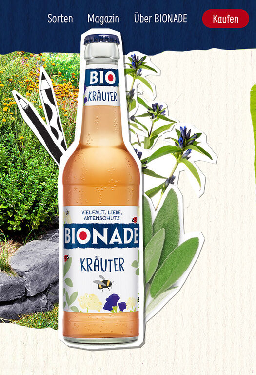Nach den limitierten Editionen von BIONADE Holunder, Himbeer-Pflaume und Zitrone-Bergamotte in den Vorjahren kommt mit BIONADE Kräuter nun die bereits vierte Sorte als Sonderabfüllung auf den Markt. Corinna Fuchs: „Denn gerade Kräuter sind unglaublich spannend, nicht nur geschmacklich. Schon mit einem kleinen Kräuterbeet auf der Fensterbank, dem Balkon oder im Garten kann jede(r) eine wertvolle Nahrungsquelle für Insekten bereitstellen. Die Natur wird es uns danken, ganz im Sinne unserer Initiative ‚Vielfalt 2030‘“.