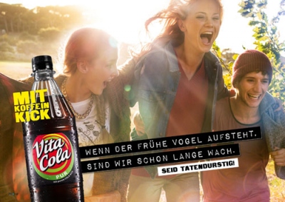 Von so viel ansteckendem Optimismus hat Ogilvy & Mather Düsseldorf sich gern inspirieren lassen: Passend zum neuen lebensfrohen Claim „Seid tatendurstig!“ kreierte die Agentur frische Bilder und freche Sprüche, die auch eine Verbindung zu den einzelnen Produkten der Marke knüpfen. Zunächst gehen zwei Motive an den Start: „Wenn euch das Leben Zitronen schenkt, macht was draus.“ bewirbt die VITA COLA Original mit dem Citrus-Kick. „Wenn der frühe Vogel aufsteht, sind wir schon lange wach.“ zielt auf den Muntermacher VITA COLA Pur mit dem Koffein-Kick.