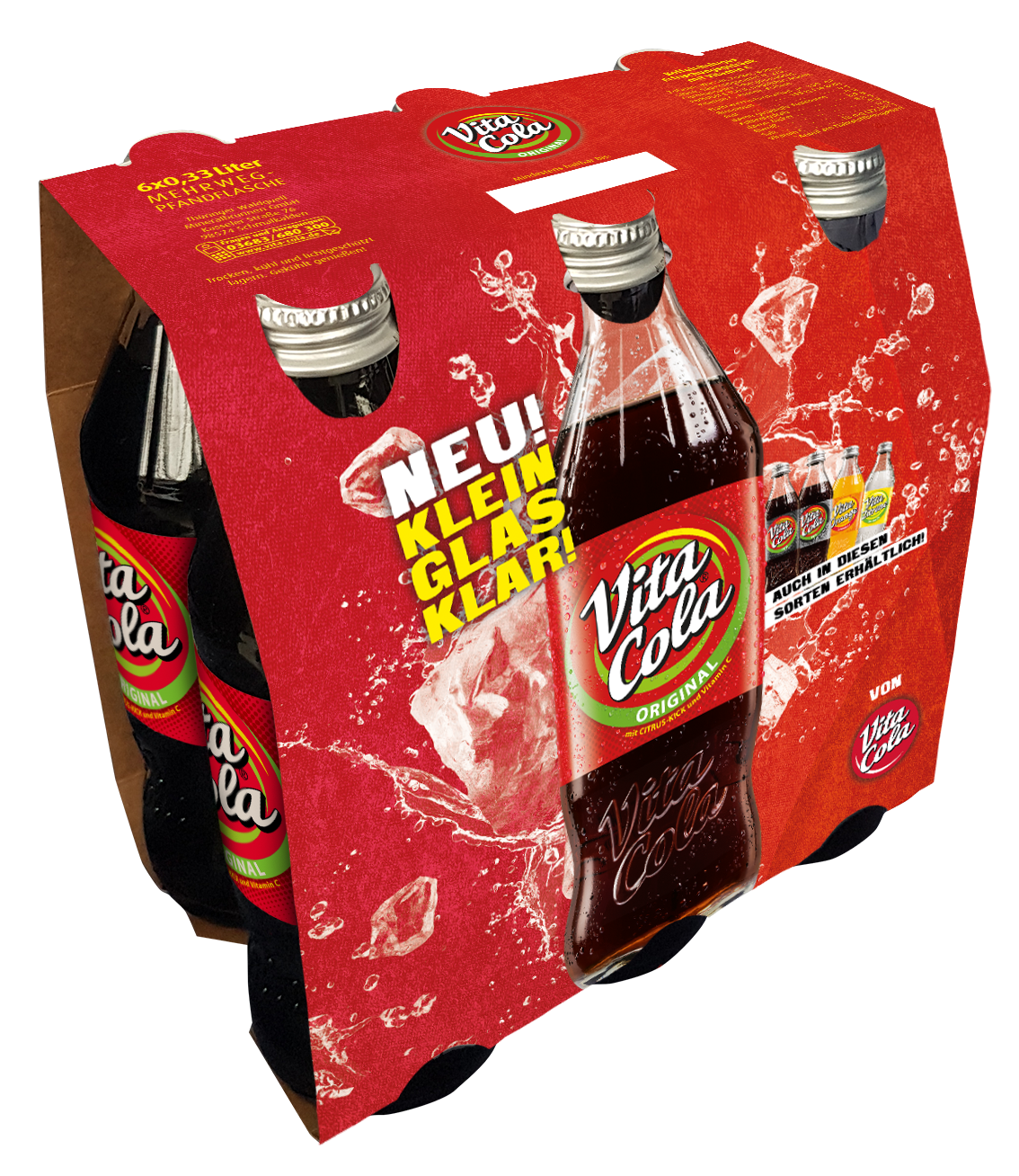 Schmalkalden/Lichtenau, 19. Februar 2021. VITA COLA erweitert das Gebindeangebot ihrer 0,33-l-Individual-Glasmehrwegflasche ab sofort um einen gefragten Sixpack. Die handliche, wiederverschließbare und umweltfreundliche Flasche im VITA COLA Markendesign hatte sich direkt mit ihrer Markteinführung 2020 als Umsatzgarant erwiesen. Beflügelt wurde ihr sofortiger Erfolgskurs von den ungebrochenen Trends zu Kleingebinden und Glasmehrwegflaschen. Drei Cola- und zwei Limonadensorten der Marke sind in der attraktiven Individualflasche erhältlich.