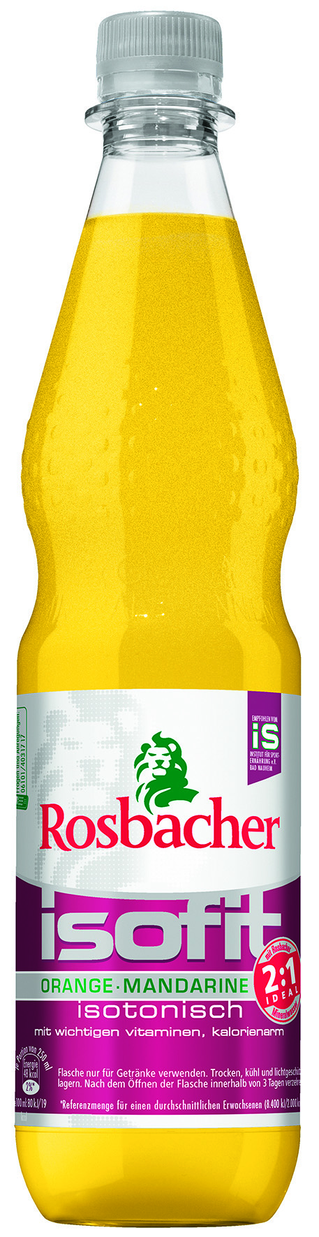 ROSBACHER achtet bei der Entwicklung seiner Erfrischungsgetränke ganz besonders auf die Bedürfnisse von Sportlern. Alle Produkte aus der Isofit-Reihe werden daher auch vom renommierten Institut für Sporternährung e.V. in Bad Nauheim empfohlen. Rosbacher Isofit Orange Mandarine ist seit März im Handel und optimal auf die Bedürfnisse von fitness-orientierten Konsumenten abgestimmt. Erhältlich im 12 x 0,75 Liter PET-Mehrwegkasten.