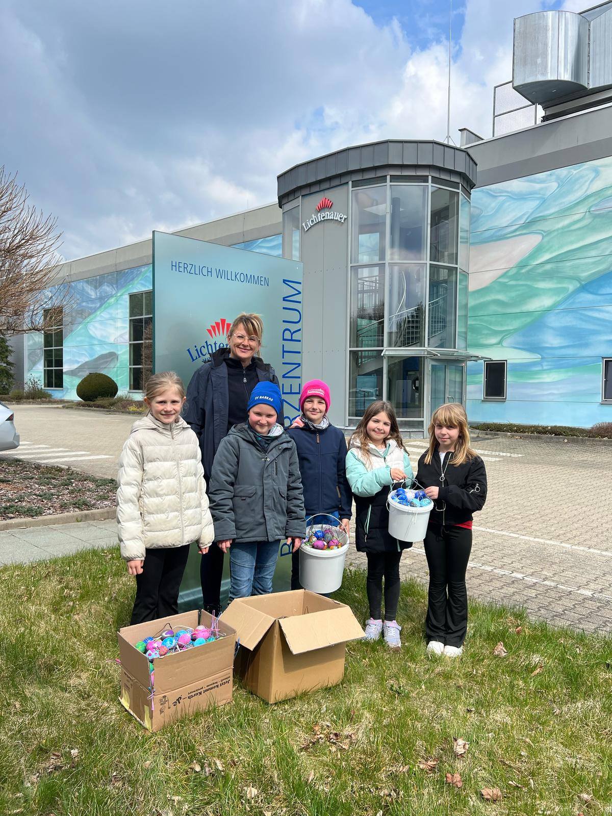 Unterstützt wurden die Lichtenauer Mineralquellen dabei von der Astrid-Lindgren-Grundschule Frankenberg/Sa. „Unsere Schülerinnen und Schüler haben mit großer Begeisterung über 500 Eier bemalt und kunstvoll verziert,“ erzählt Ines Klein, Sozialpädagogin des Hortes der Astrid-Lindgren-Grundschule: „Sie haben mit vielen kreativen Ideen dazu beigetragen, diesen besonderen Osterbrauch in der Gemeinde Lichtenau weiterzuführen.“ Am Mittwoch brachten die Kinder ihre Kunstwerke zu den Lichtenauer Mineralquellen, um anschließend gemeinsam mit Mitarbeiterinnen und Mitarbeitern den Osterbaum des Unternehmens direkt am Wanderweg zu schmücken.