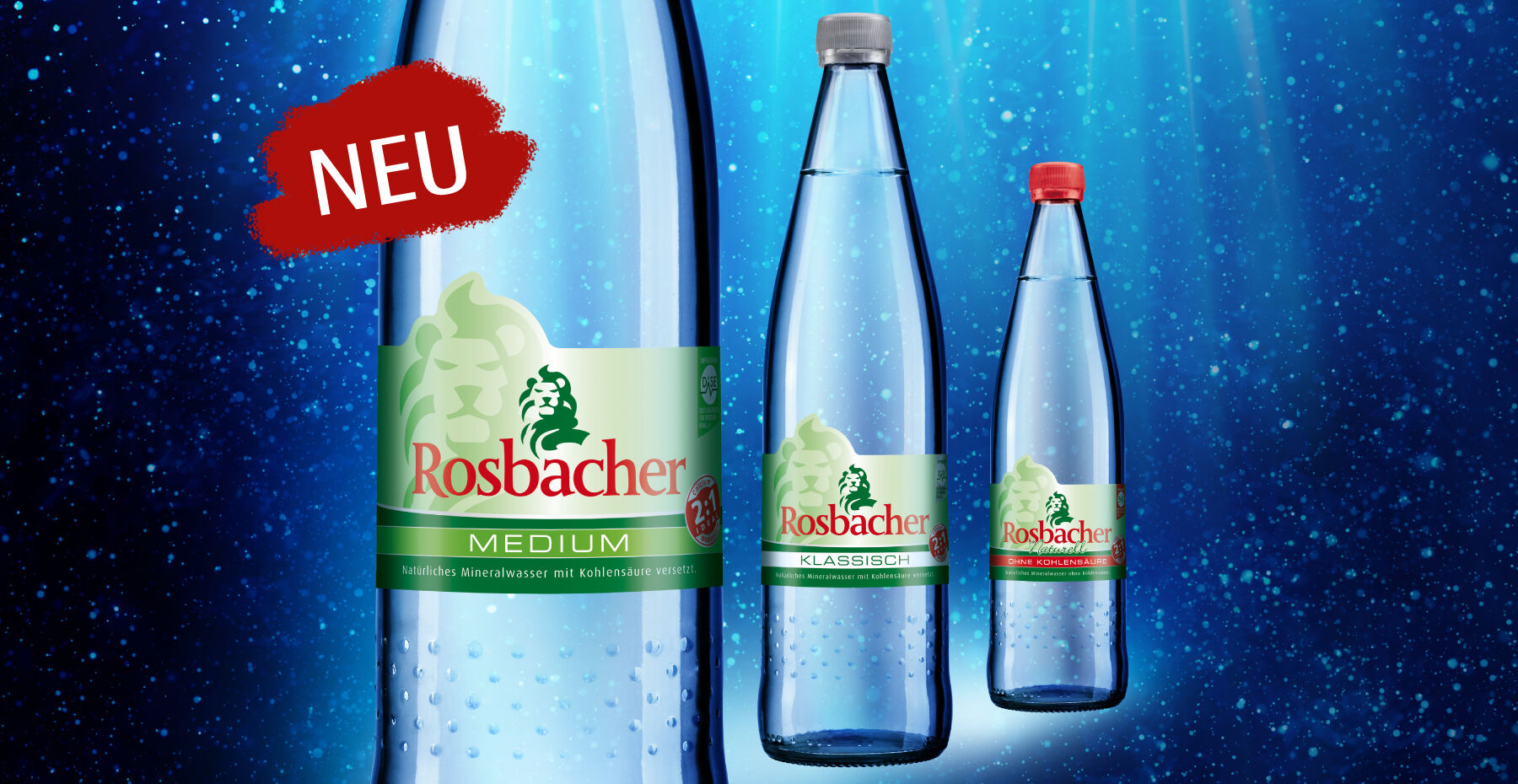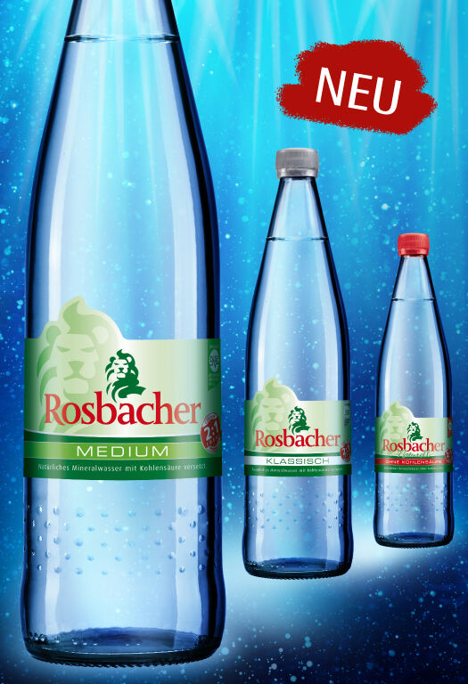 Mit der neuen Ästhetik geht nun auch Einheitlichkeit im Sortiment einher: Gab es bislang je nach Kohlensäurevariante leichte Unterschiede in Größe und Glasfarbe, sind jetzt alle drei Rosbacher Mineralwässer Naturell, Medium und Klassisch durchweg in 0,75 l und weißem Glas erhältlich. Anhand der Deckelfarbe – rot für Naturell, grün für Medium und silber für Klassisch – lässt sich die bevorzugte Sorte nach wie vor auf einen Blick erkennen.